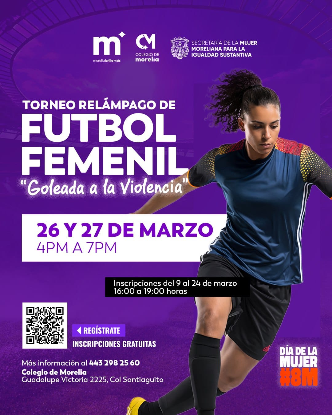 Morelia, Michoacán.- En el marco de la conmemoración del Día Internacional de la Mujer (8M), el Gobierno de Morelia invita a participar en el torneo relámpago de fútbol femenil “Goleada a la Violencia”, iniciativa que busca promover el deporte, la convivencia y espacios seguros para las mujeres en la capital michoacana.